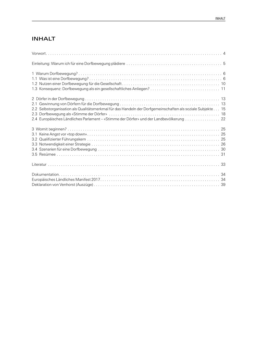 Dorfbewegungen haben national und international Wirkungen auf die nachhaltige Entwicklung, Lebendigkeit und Lebensfähigkeit der Dörfer als dauerhafte menschliche Existenzformen.